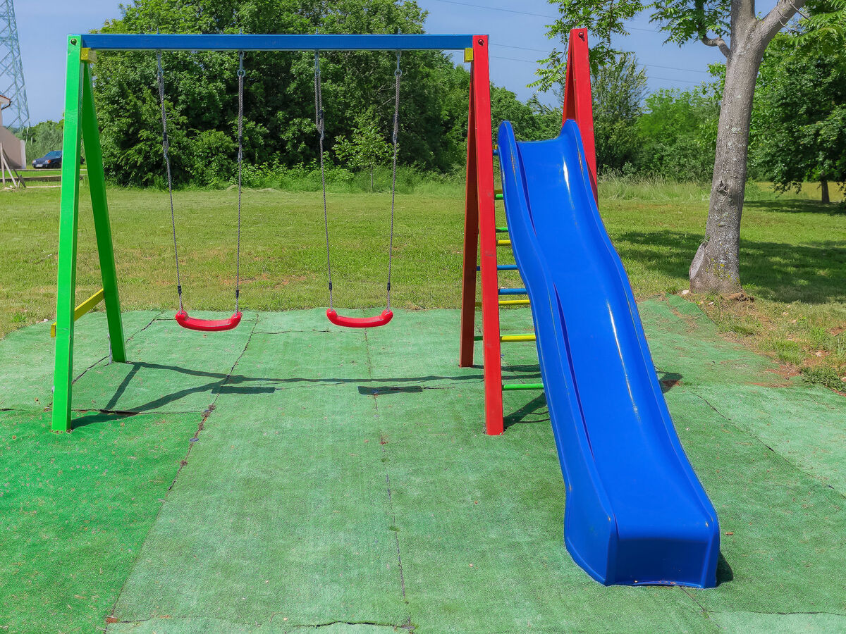 Douche extérieure, pool house avec réfrigérateur et plaque de cuisson, terrasse (30 m2), meubles de jardin, barbecue, espace de jeux pour les enfants (toboggan, balançoire).