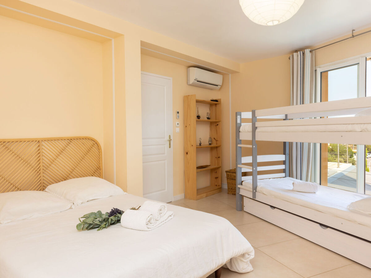 1 chambre d'enfants avec 1 x 2 lits superposés (90 cm, longueur 190 cm), 1 grand-lit (140 cm, longueur 190 cm), douche et air-conditionné.