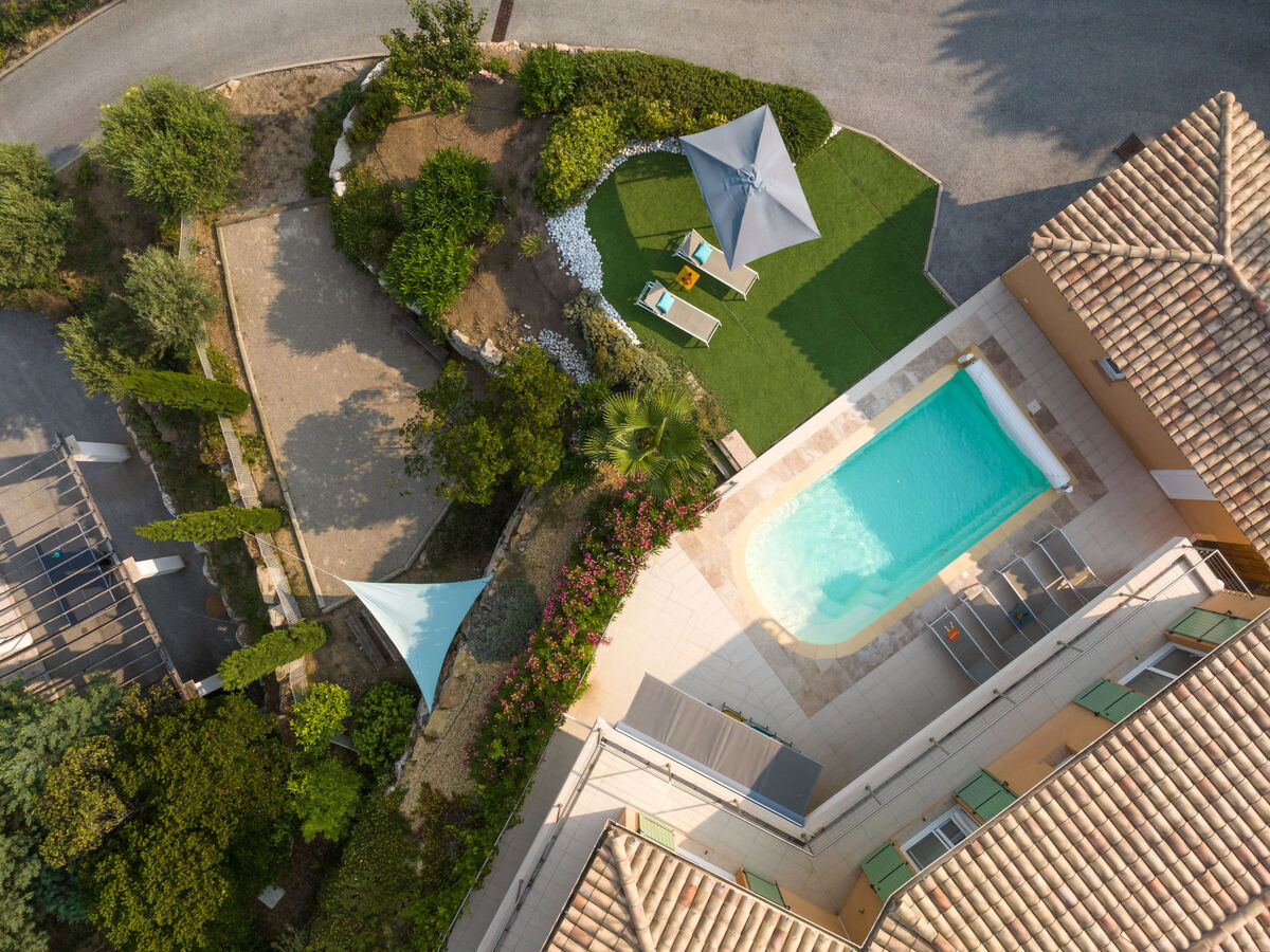 À 1.5 km du centre de Saint Aygulf, à 9 km du centre de Fréjus, à 47 km du centre de Cannes, sur un versant, dans un quartier résidentiel, à 2 km de la mer.