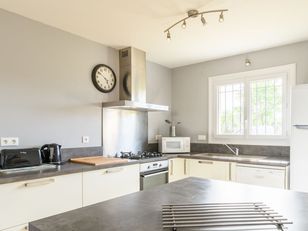 Cuisine ouverte (four, lave-vaisselle, 4 feux, grille-pain, bouilloire électrique, micro-ondes, congélateur, cafetière électrique).