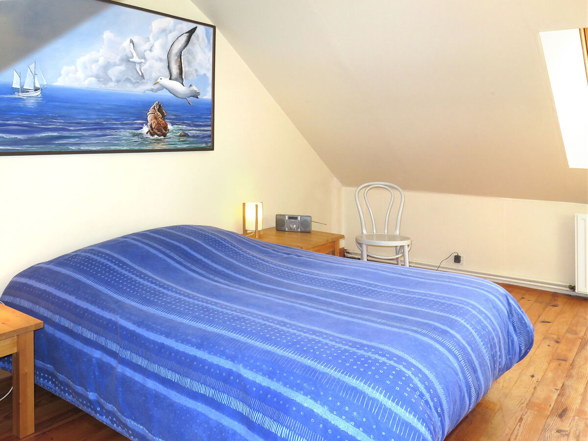 À l'étage supérieur: 1 chambre, mansardée avec fenêtre sous le toit avec 1 grand-lit (140 cm, longueur 190 cm).