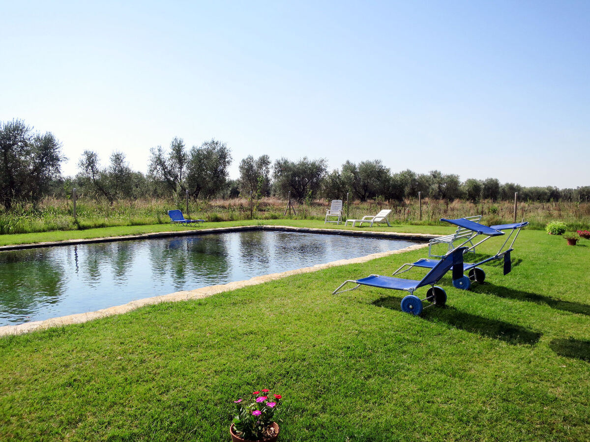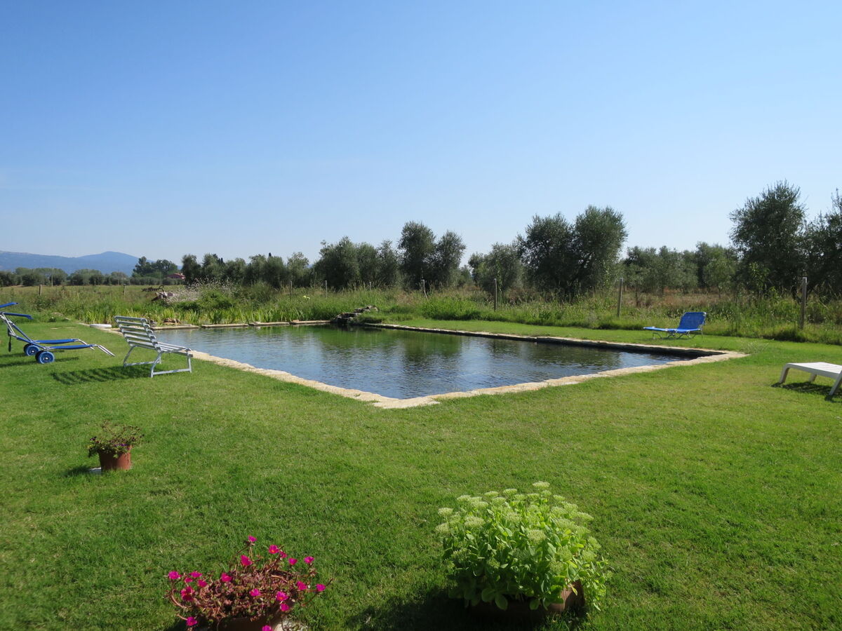 La piscine est un lac biologique avec un système naturel de purification de l'eau par phytodépuration.