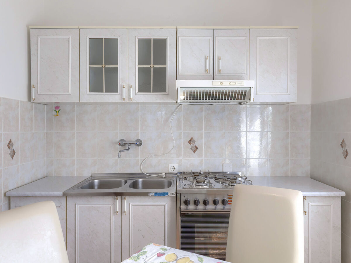 Cuisine ouverte (1 plaque de cuisson, four, 3 feux, congélateur, cafetière électrique).