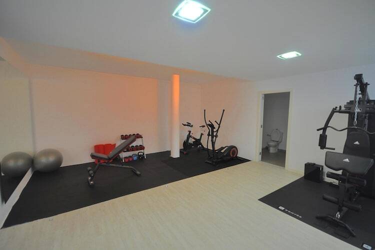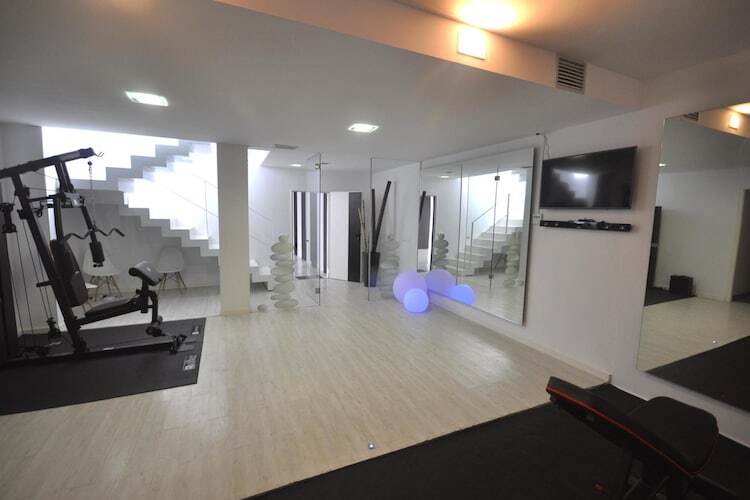 Rez-de-chaussée: (cuisine(table, foyer(vitrocéramique), grille-pain, cafetière/percolateur, micro ondes, lave-vaisselle , réfrigérateur, congélateur, sèche-linge, lave-linge , table à repasser, fer à repasser), salle à manger-salon(TV(satellite, digital), table, coin salon, Lecteur DVD, Lecteur CD), chambre(lit double), salle de bains(douche)) Au 1er étage: (chambre avec salle de bains(lit double, 2x douche a jets), chambre avec salle de bains(lit double, douche)) Sous-sol: (salle de bains(douche), salle de fitness, garage) chauffage(chauffage par le sol), climatisation, terrasse, mobilier de jardin, transats, barbecue(gaz), parking, parasol, piscine(privé)