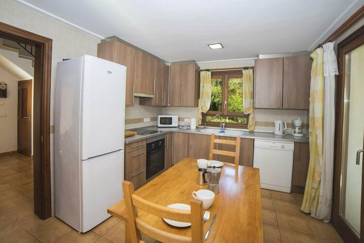 La villa propose un hébergement sur un seul étage avec un salon confortable et climatisé, des murs pavés de pierre et des poutres blanches. Une télévision avec chaînes satellite en allemand, un lecteur CD et des canapés confortables offrent un espace de détente. La cuisine est entièrement équipée avec une cuisinière à gaz, un micro-ondes, une bouilloire et une table à manger. Un lave-linge, un fer et une planche à repasser sont également fournis.