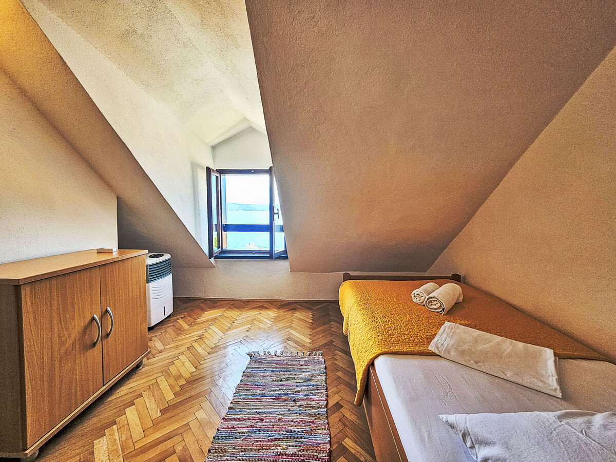 3ème étage: (escalier raide) 2 chambres, mansardées, chaque chambre avec: 1 lit et air-conditionné.