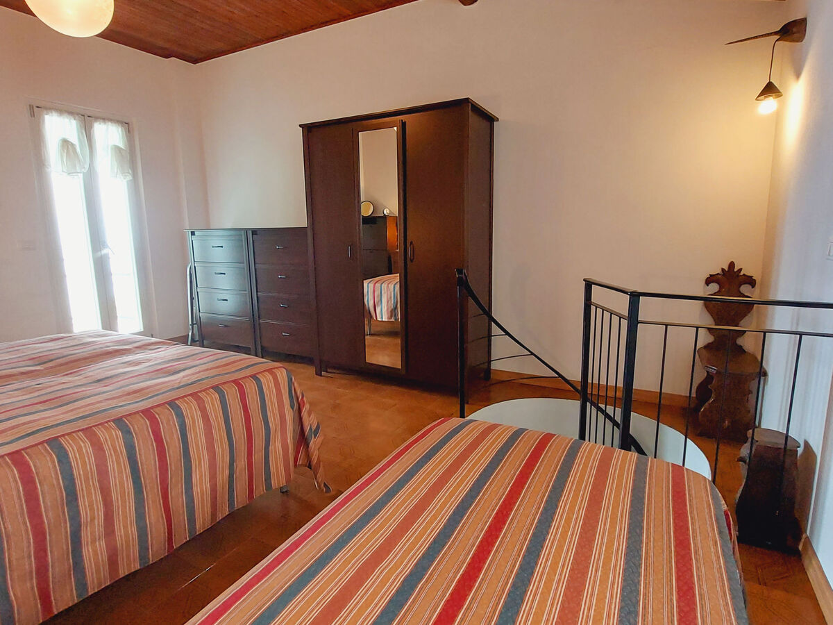 2ème étage: (escalier en colimaçon) 1 chambre, mansardée, ouverte Portes basses hauteur 185 cm avec 1 lit et 1 lit double.