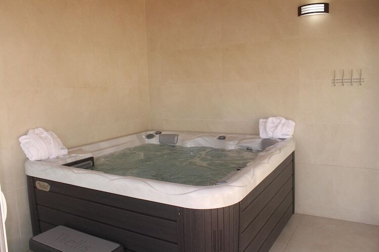 Rez-de-chaussée: (cuisine(bouilloire, grille-pain, plaque de cuisson(4 foyers, vitrocéramique), hotte, cafetière/percolateur, four, micro ondes, lave-vaisselle , combinaison réfrigérateur/congélateur), salle à manger-salon(TV(chaînes de télévision internationales), table, coin salon, climatisation), chambre(2x lit simple(100 x 190 cm), TV, climatisation), chambre avec salle de bains(lit double(150 x 200 cm), TV, douche, lavabo, WC, climatisation), salle de bains(baignoire-douche, lavabo, WC), buanderie (sèche-linge, lave-linge , table à repasser, fer à repasser)) spa nordique, terrasse(privé), jardin(privé), mobilier de jardin, barbecue, chaises longues, piscine(privé, chauffable, 9 x 5 m.), lit d'enfant, chaise haute