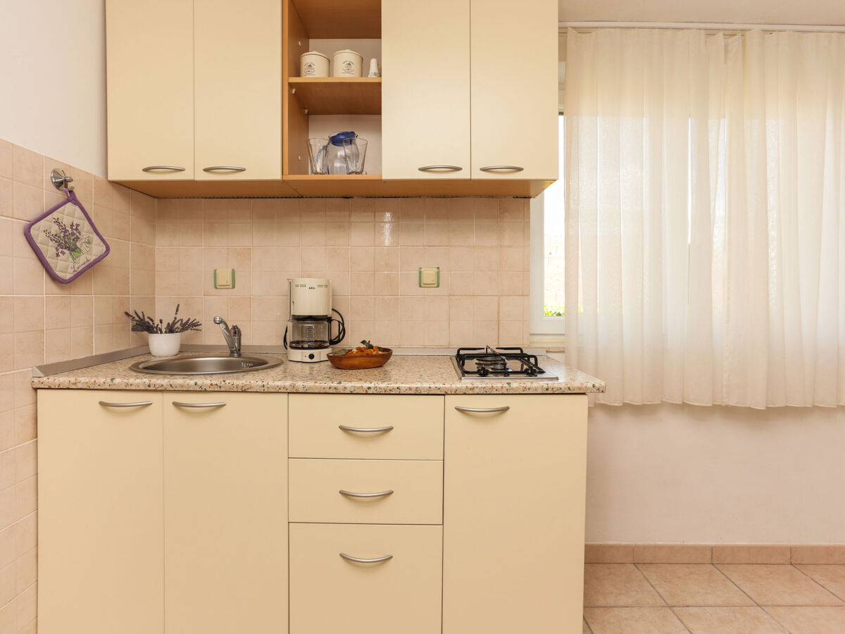 L'appartement au rez-de-chaussée dispose d'une cuisine et d'une chambre.