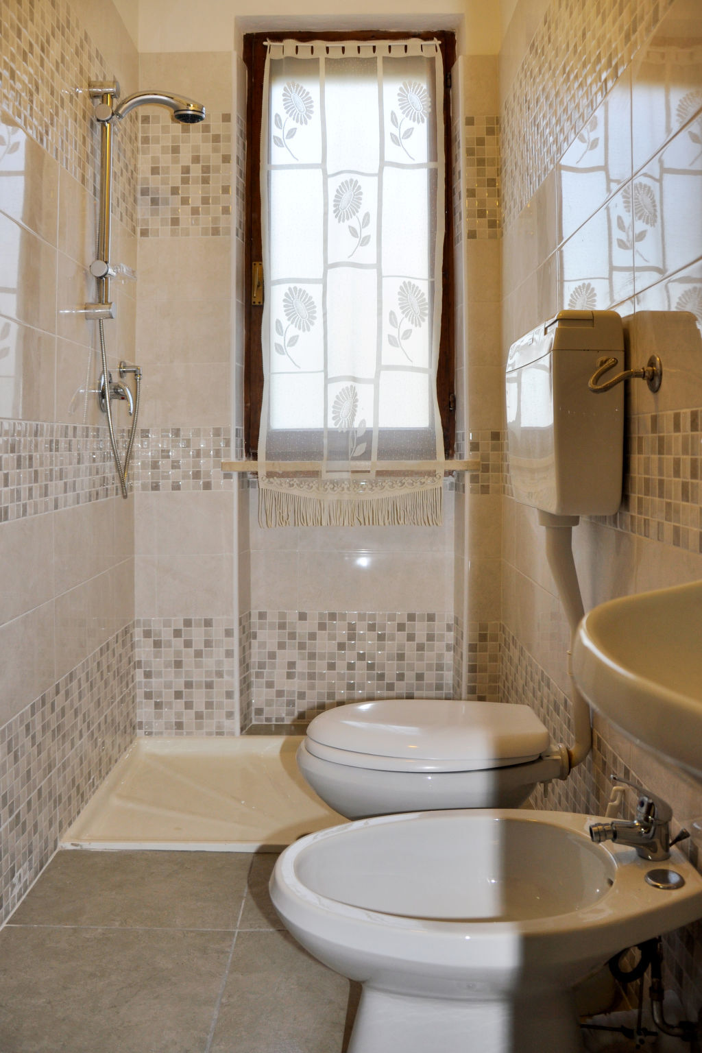 Douche/bidet/WC, baignoire sabot/bidet/WC.