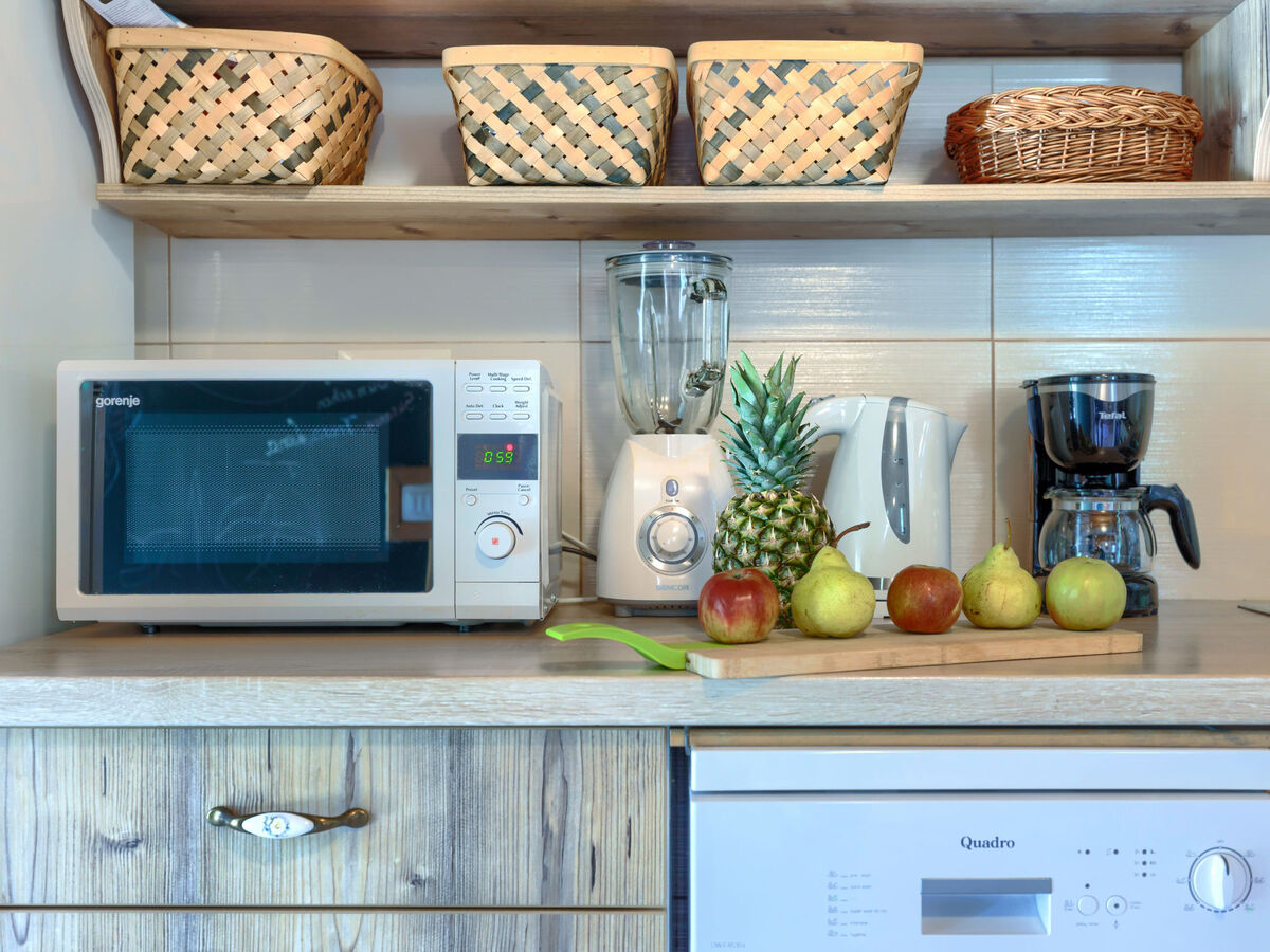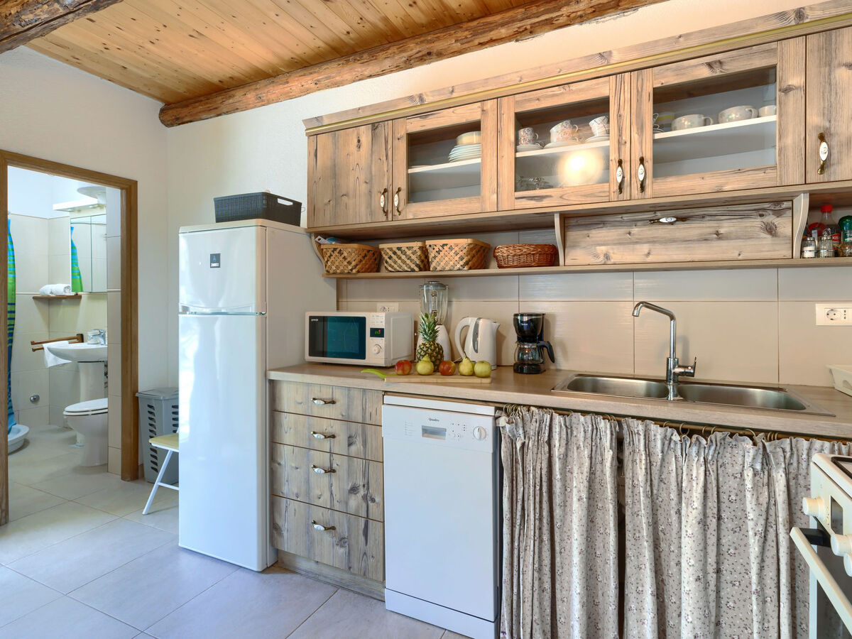 Cuisine ouverte (4 plaques de cuisson, four, lave-vaisselle, micro-ondes, congélateur, cafetière électrique).