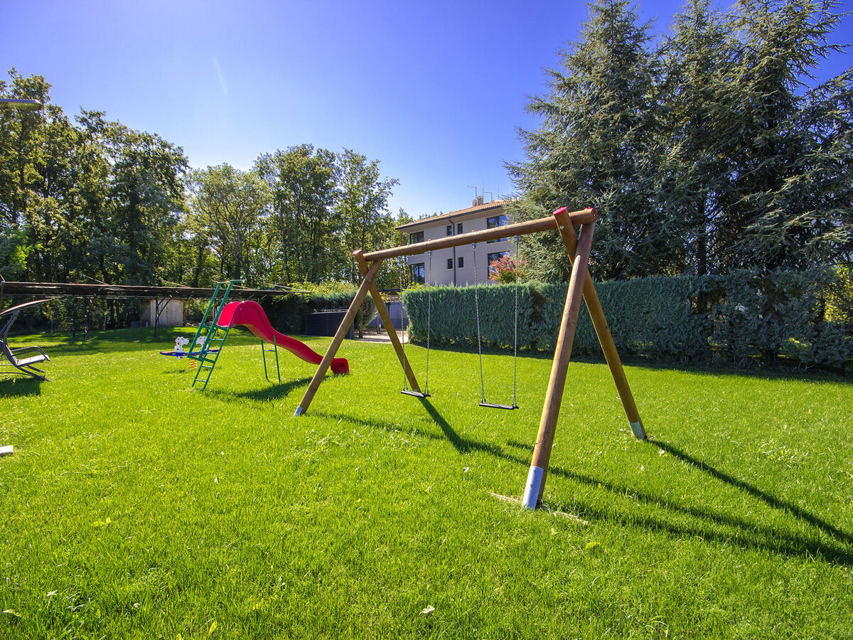 Espace de jeux pour les enfants (toboggan, balançoire).