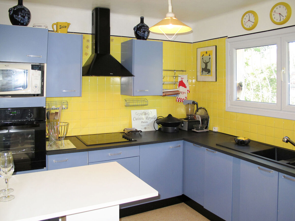 Cuisine (four, lave-vaisselle, 4 plaques vitrocéramiques, grille-pain, bouilloire électrique, micro-ondes, congélateur, cafetière électrique) avec bar.