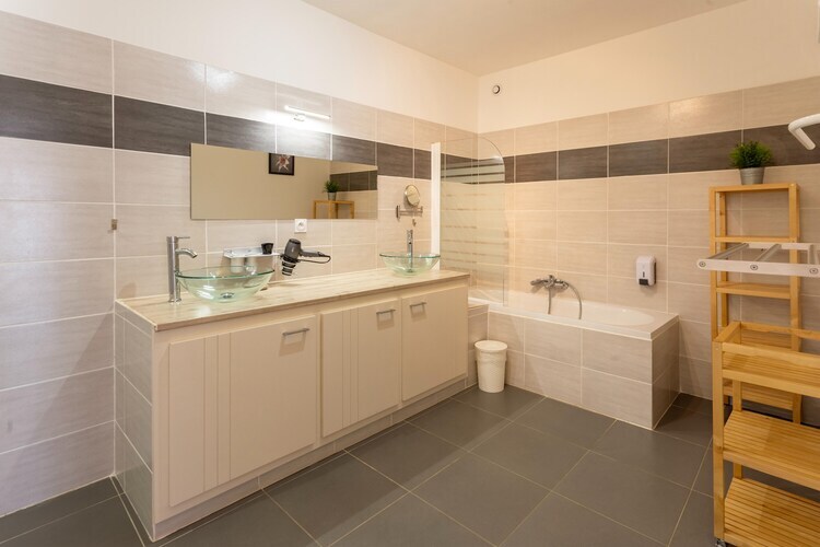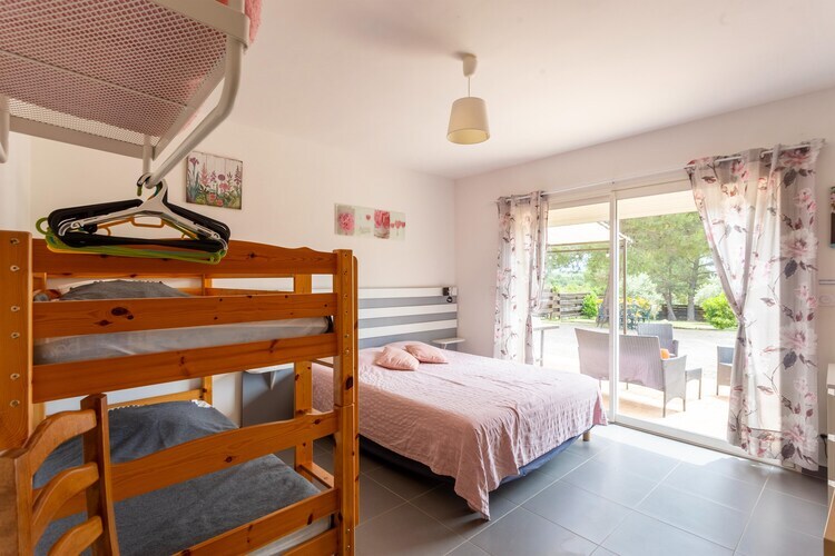 Rez-de-chaussée: (cuisine ouverte(bouilloire, grille-pain, plaque de cuisson(4 foyers, vitrocéramique), hotte, cafetière/percolateur(cups, filtre), four, micro ondes, lave-vaisselle , combinaison réfrigérateur/congélateur), salle à manger-salon(canapé-lit double(140 x 190 cm), TV, table, Lecteur DVD, climatisation), chambre(lit double(160 x 200 cm)), chambre(lit double(140 x 200 cm)), chambre avec salle de bains(lit double(160 x 200 cm), Lit superposé, douche, lavabo, WC), salle de bains(baignoire, douche, 2x lavabo), WC, buanderie (lave-linge , équipements de jeux, table à repasser, fer à repasser, jeux de société), portes-fenêtres) terrasse, terrasse(couverte), jardin(privé, clôturé, 900 m2), mobilier de jardin, transats, barbecue(gaz), piscine(privé, 4 x 4 m., ouvert de Mai jusqu'à (inclus) Sept), terrain de pétanque, équipements de jeux, jeux de société