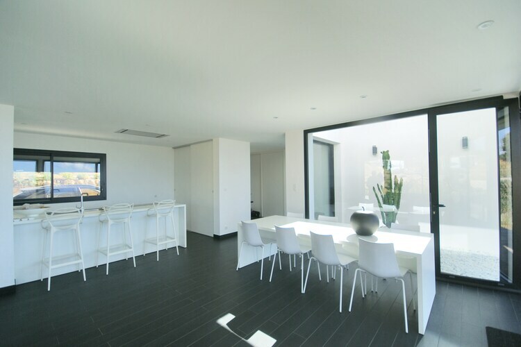 Rez-de-chaussée: (hall d'entrée, cuisine ouverte(bouilloire, grille-pain, plaque de cuisson(3 foyers), hotte, cafetière/percolateur(cups), four, micro ondes, lave-vaisselle , combinaison réfrigérateur/congélateur), salle à manger-salon(TV(écran plat), table, coin salon, climatisation), chambre(lit double(160 x 200 cm), climatisation), chambre(Lit superposé, climatisation), chambre avec salle de bains(lit double(180 x 200 cm), baignoire, douche, lavabo, WC, balcon ou terrasse, climatisation), salle de bains(douche, lavabo), WC) buanderie (lave-linge ), climatisation, terrasse, jardin(clôturé), mobilier de jardin, transats, barbecue, piscine(privé), lit d'enfant