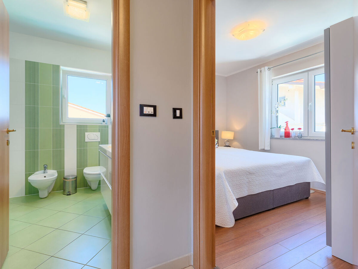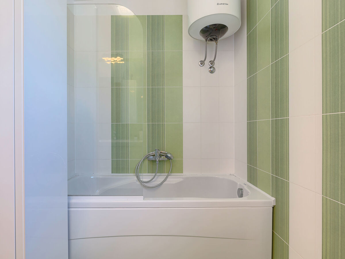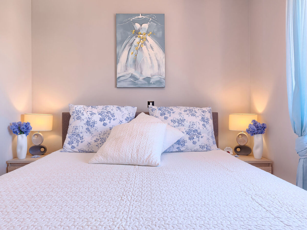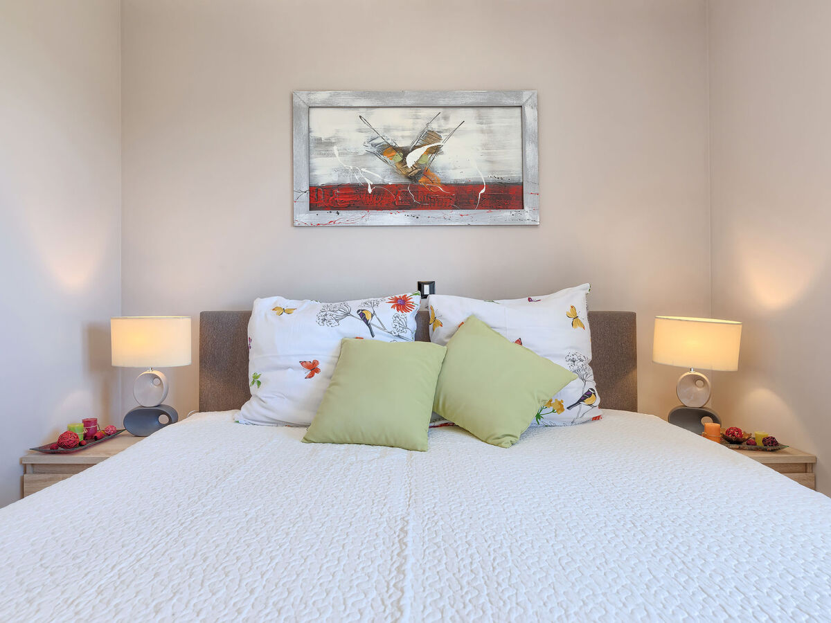 1 chambre avec 1 lit double (2 x 90 cm, longueur 200 cm), bain/WC.