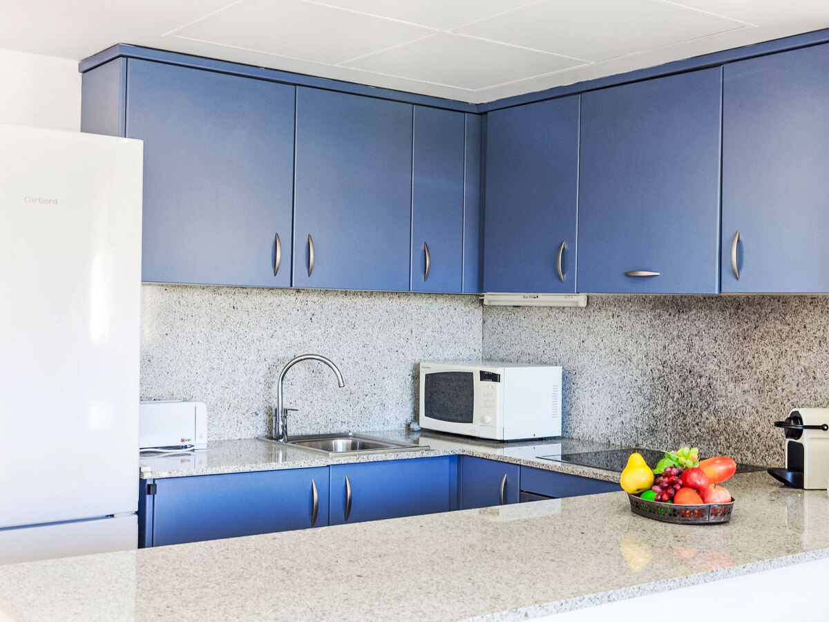 Cuisine ouverte (4 plaques de cuisson, four, micro-ondes, congélateur).