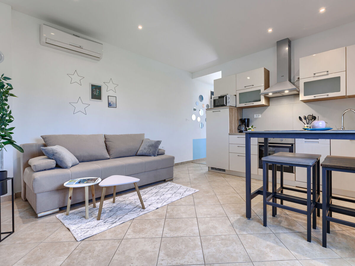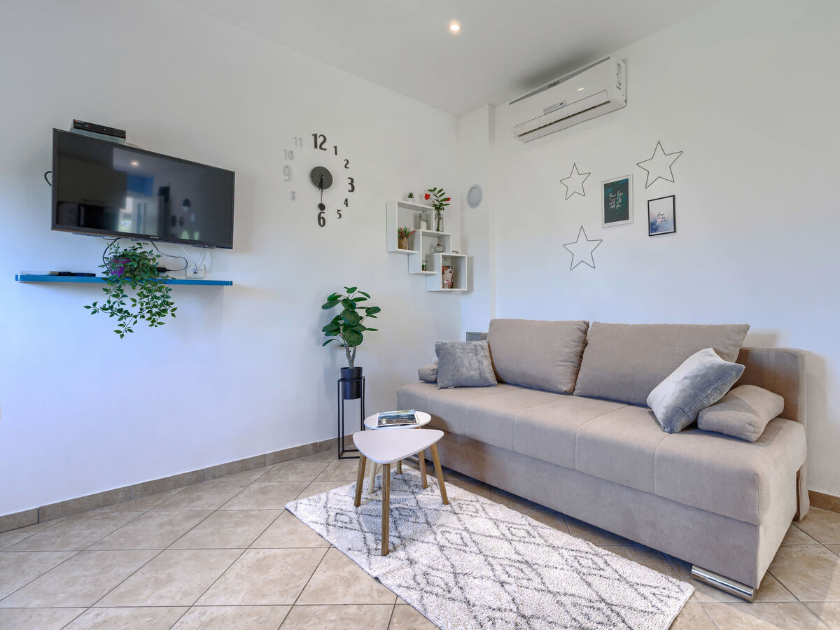 Séjour/salle à manger avec 1 divan-lit double (120 cm, longueur 190 cm), TV (satellite) (écran plat), air-conditionné.