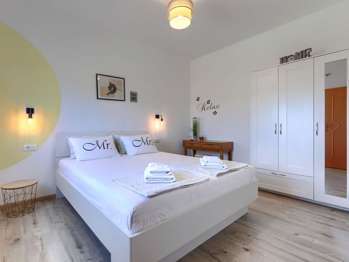 1 chambre avec 1 grand-lit (160 cm, longueur 200 cm).