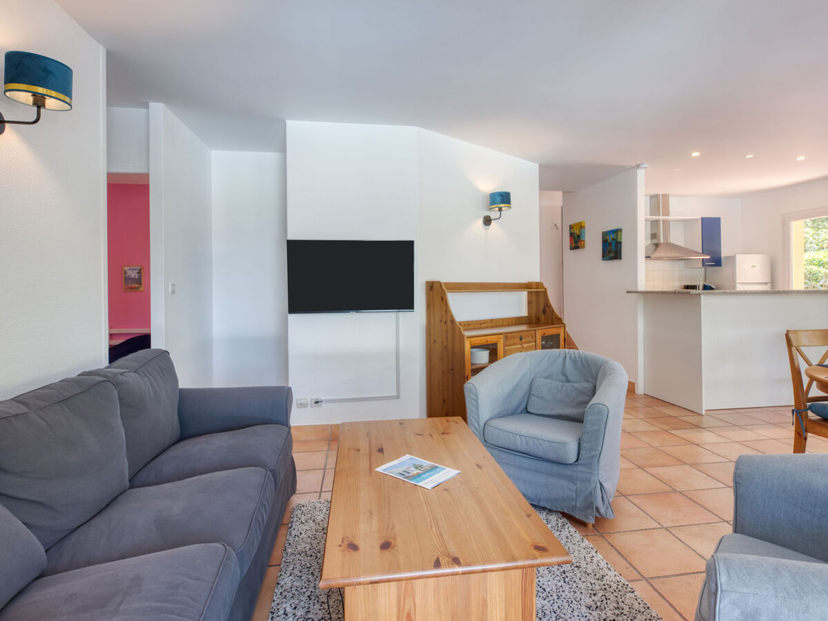 Aménagement confortable: séjour/salle à manger avec TV.
