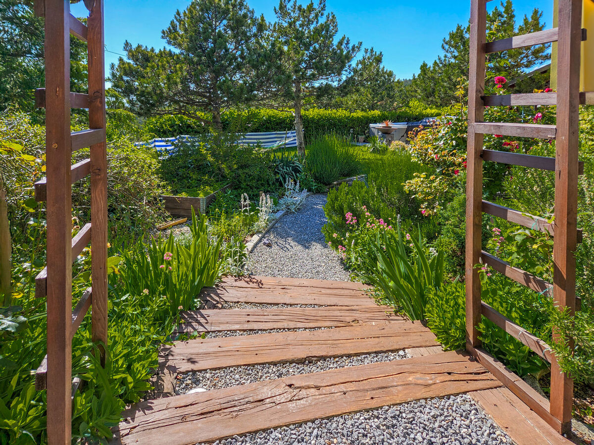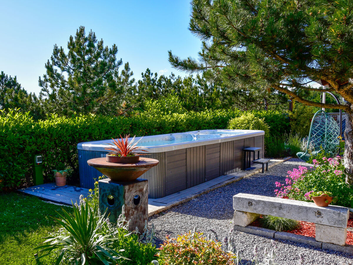 A usage privé: terrain 600 m2 (clôturé) avec pelouse 100 m2 fleurs, piscine (6 x 2 m, profondeur 120 cm, disponibilité saisonnière: 01.Jan.