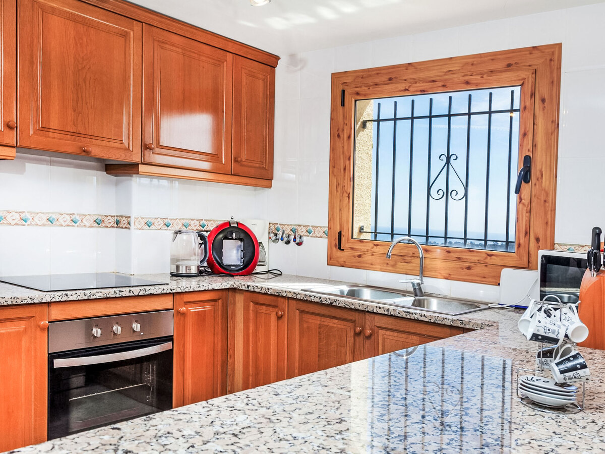 Cuisine ouverte (four, lave-vaisselle, 4 plaques vitrocéramiques, grille-pain, bouilloire électrique, micro-ondes, cafetière électrique).
