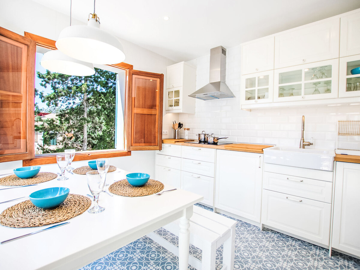 Magasins 3 km, supermarché 700 m, centre commercial 15 km, restaurant, bar 700 m, location de bicyclettes 3.5 km, arrêt de bus 300 m, plage de sable "Playa Cala Blava" 1.1 km, plage de galets 500 m, plage de rochers 400 m.