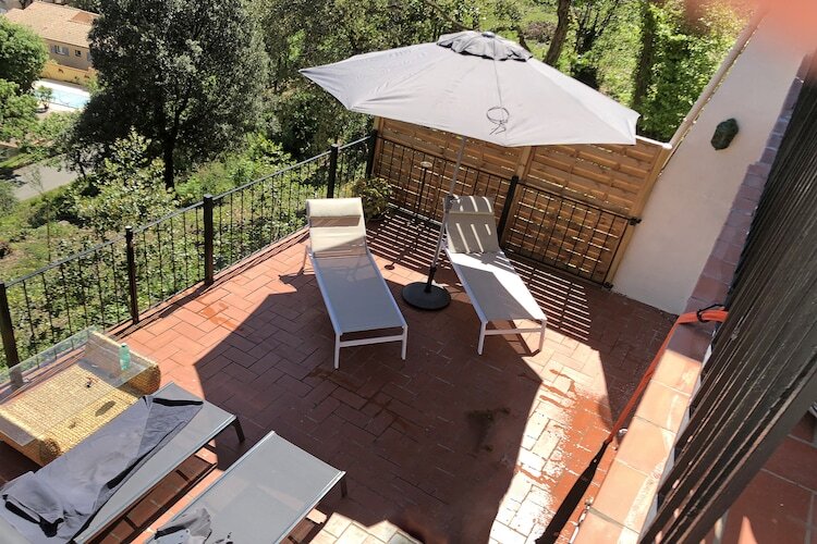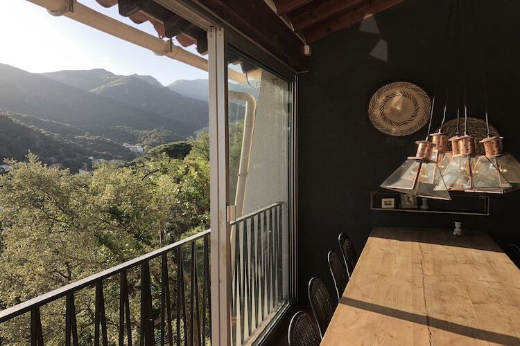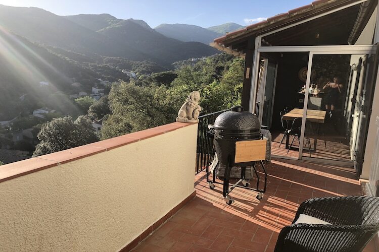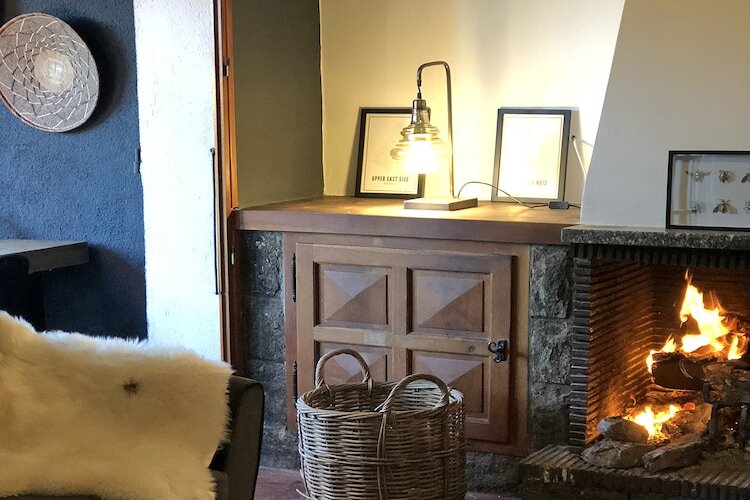 Le salon est joliment meublé avec une cheminée, une TV avec internet (Netflix), de beaux fauteuils et un bureau. Adjacent à la salle de séjour vous trouverez la véranda avec la table à manger et une vue fantastique sur la vallée. Il est également possible de prendre vos repas à l'extérieur en déplaçant la table à manger sur la terrasse.