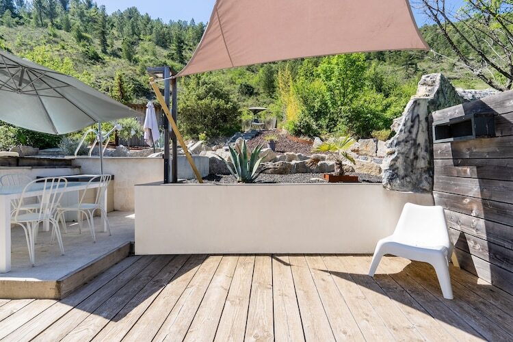 Nichée à seulement 2 km du centre des Vans, cette charmante villa réservée aux adultes, pouvant accueillir 4 personnes, offre des vacances paisibles avec piscine privée, terrasse panoramique et espaces de vie lumineux et climatisés. Orientée plein sud, elle baigne la maison de lumière, tandis que la terrasse, équipée d'un barbecue en pierre et de meubles de jardin, est idéale pour des repas décontractés et un moment de détente au bord de la piscine.
