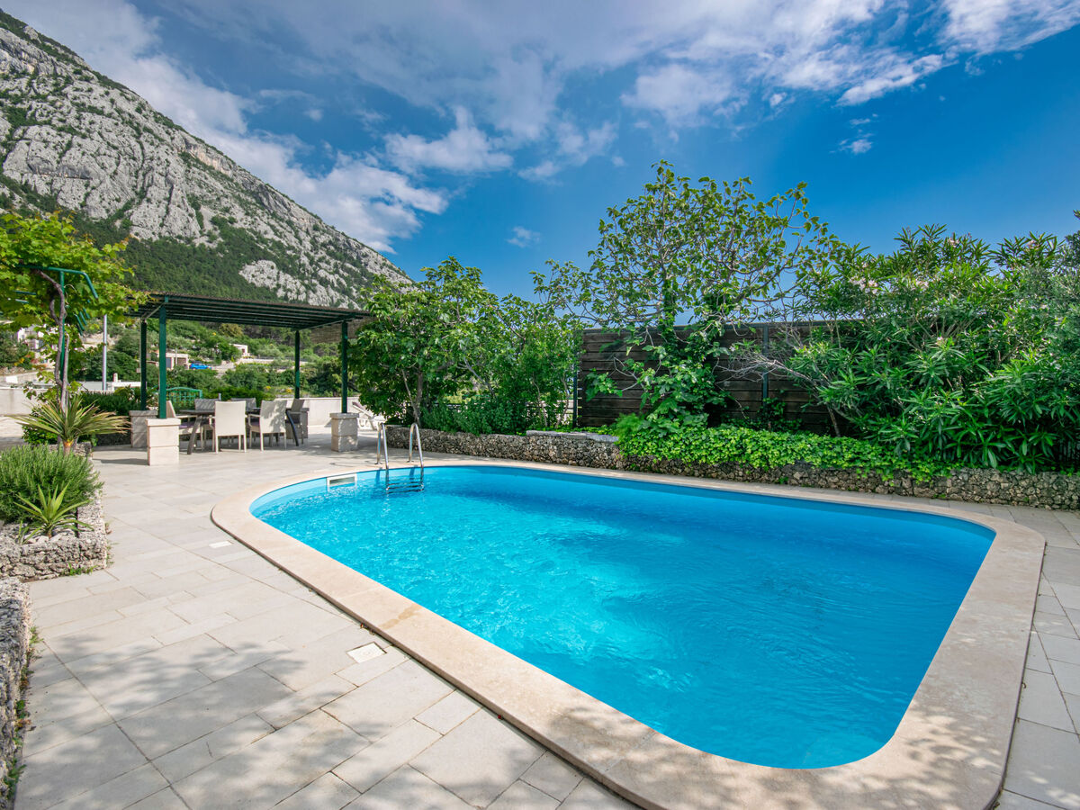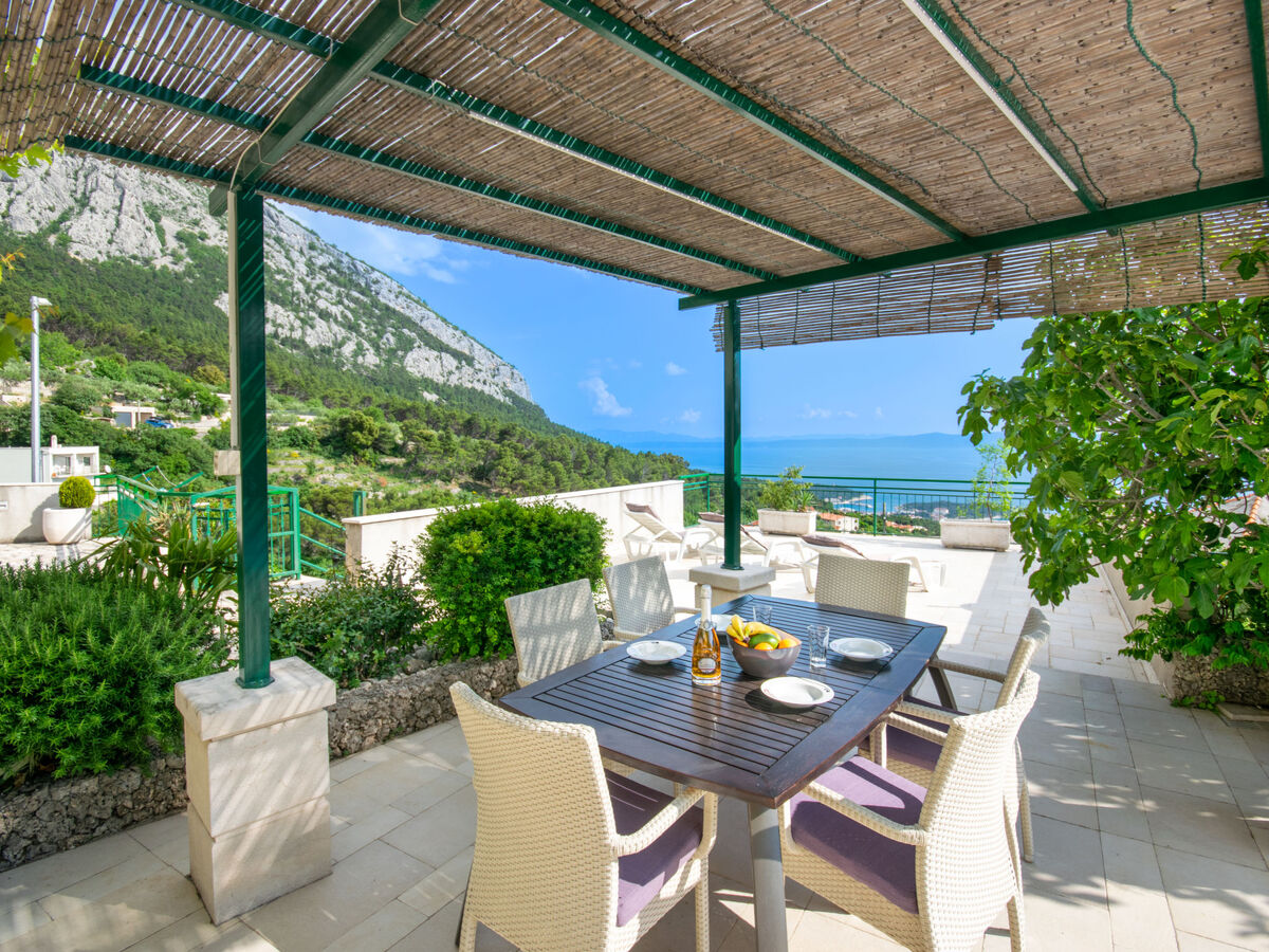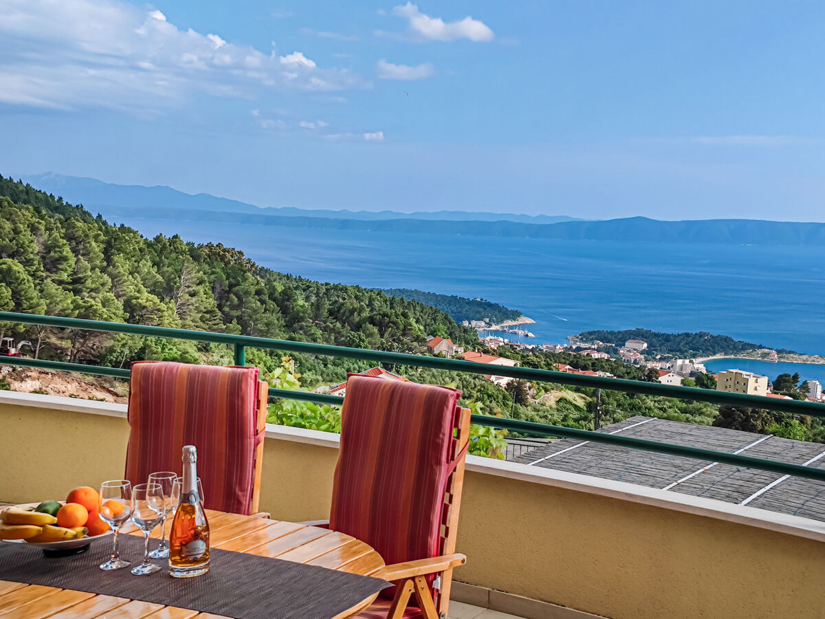 Dans le haut de la station de Makarska, dans le quartier de Veliko Brdo, à 3 km du centre de Makarska, situation tranquille, ensoleillée, surélevée, à 2 km de la mer, à 2 km de la plage, dans la verdure.