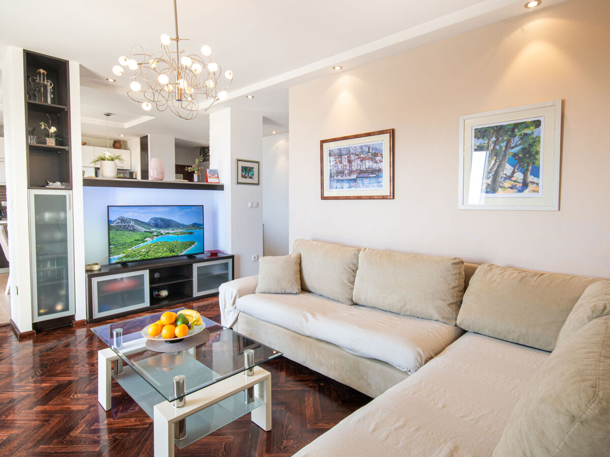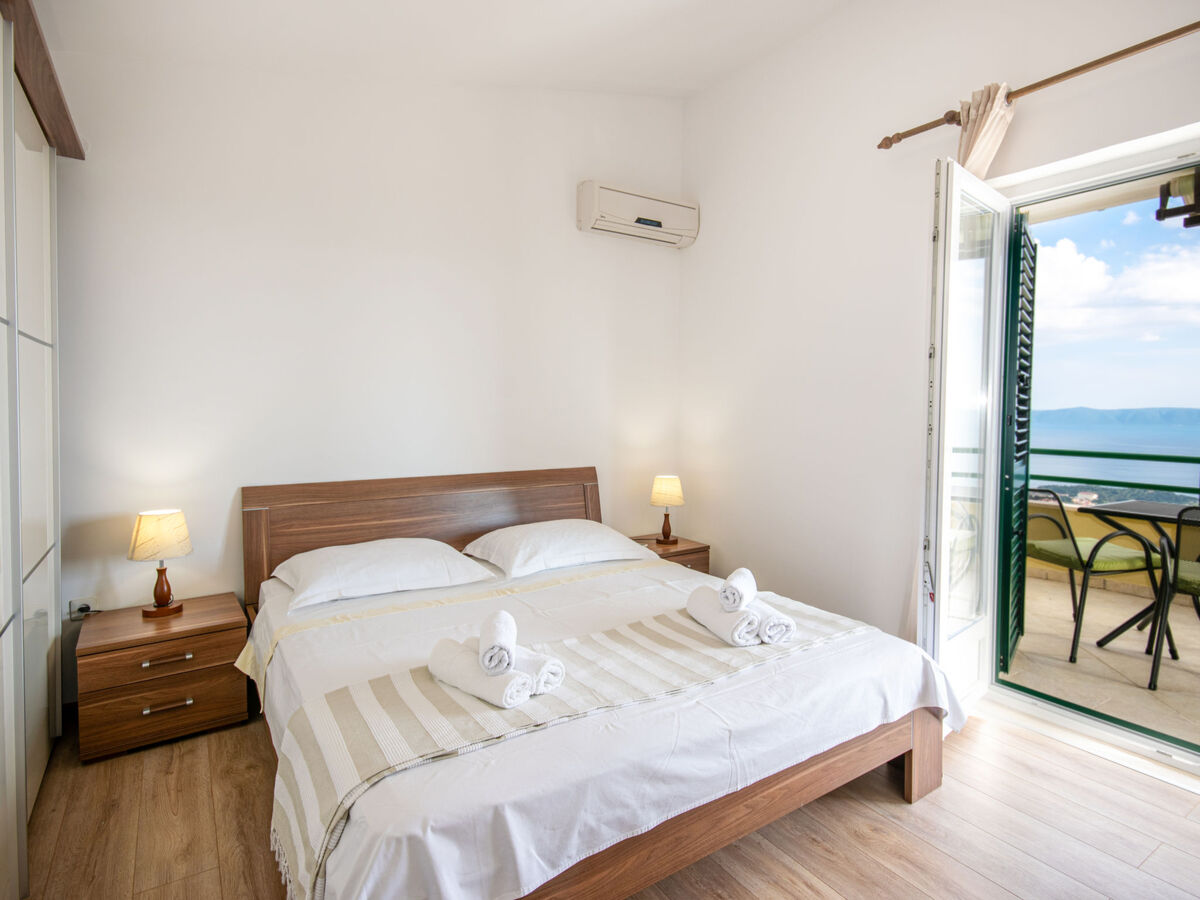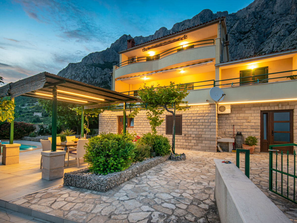 Dans le haut de la station de Makarska, dans le quartier de Veliko Brdo, à 3 km du centre de Makarska, situation tranquille, ensoleillée, surélevée, à 2 km de la mer, à 2 km de la plage, dans la verdure.