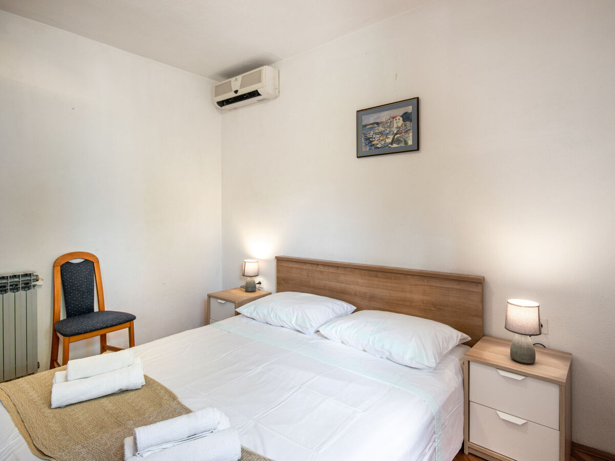 1 chambre avec 1 lit double (2 x 80 cm, longueur 200 cm), air-conditionné.
