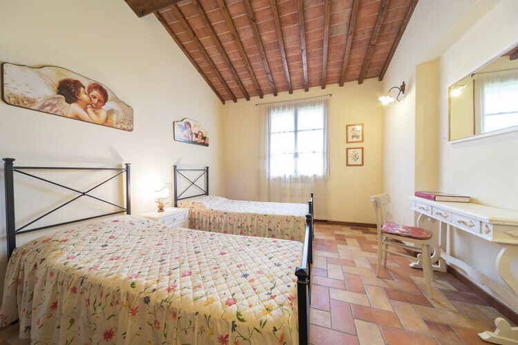 La ferme est divisée en 8 appartements, disposés dans deux maisons différentes. La maison de l'agriculteur avec son "tour" distinctive peut être vu immédiatement à l'arrivée, en remontant l'avenue bordée de cyprès et de maisons, en plus de deux appartements restaurés des propriétaires. Au-delà de de la cour, terrasse carrelée rustique, idéal pour les soirées et où les enfants peuvent jouer, peut être entrevu parmi les oliviers une autre maison, une brique rouge profond dans la campagne environnante, qui abrite d'autres appartements.