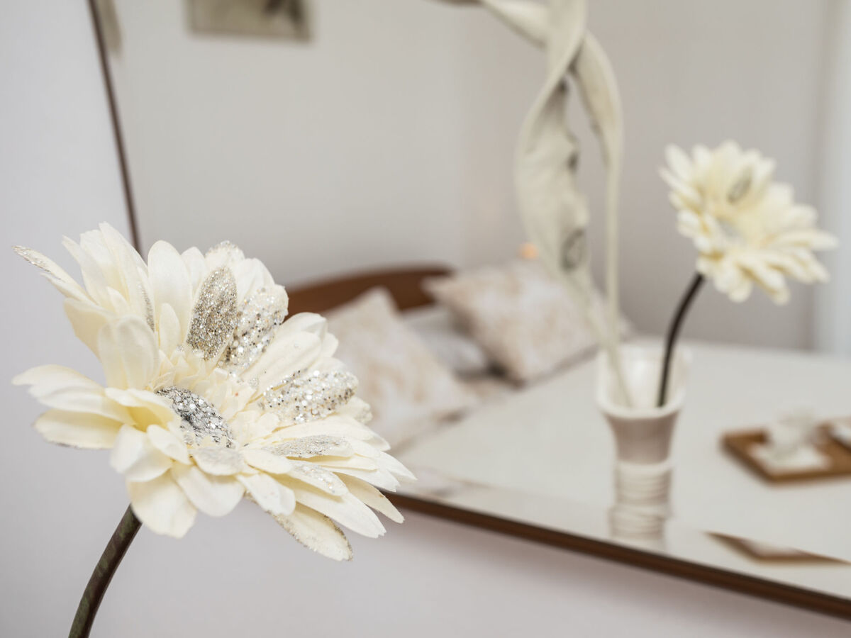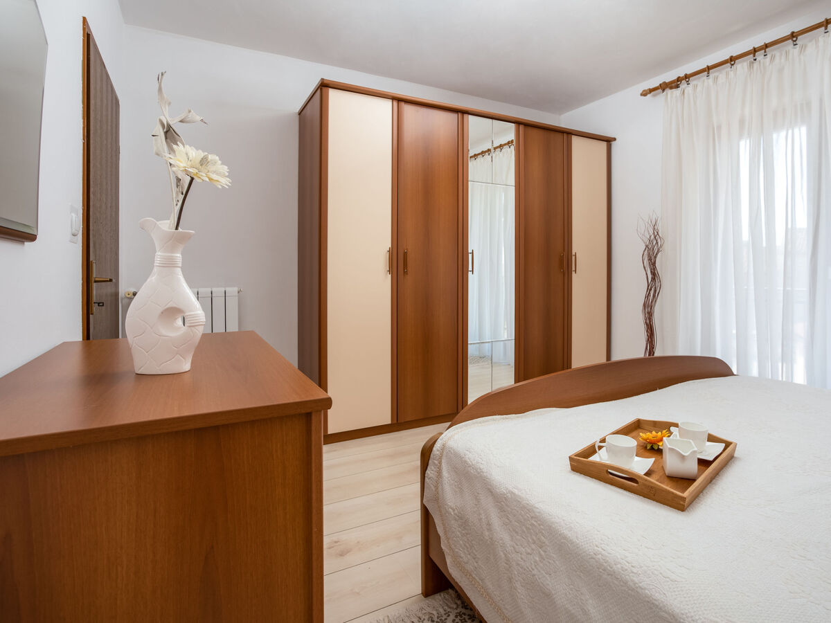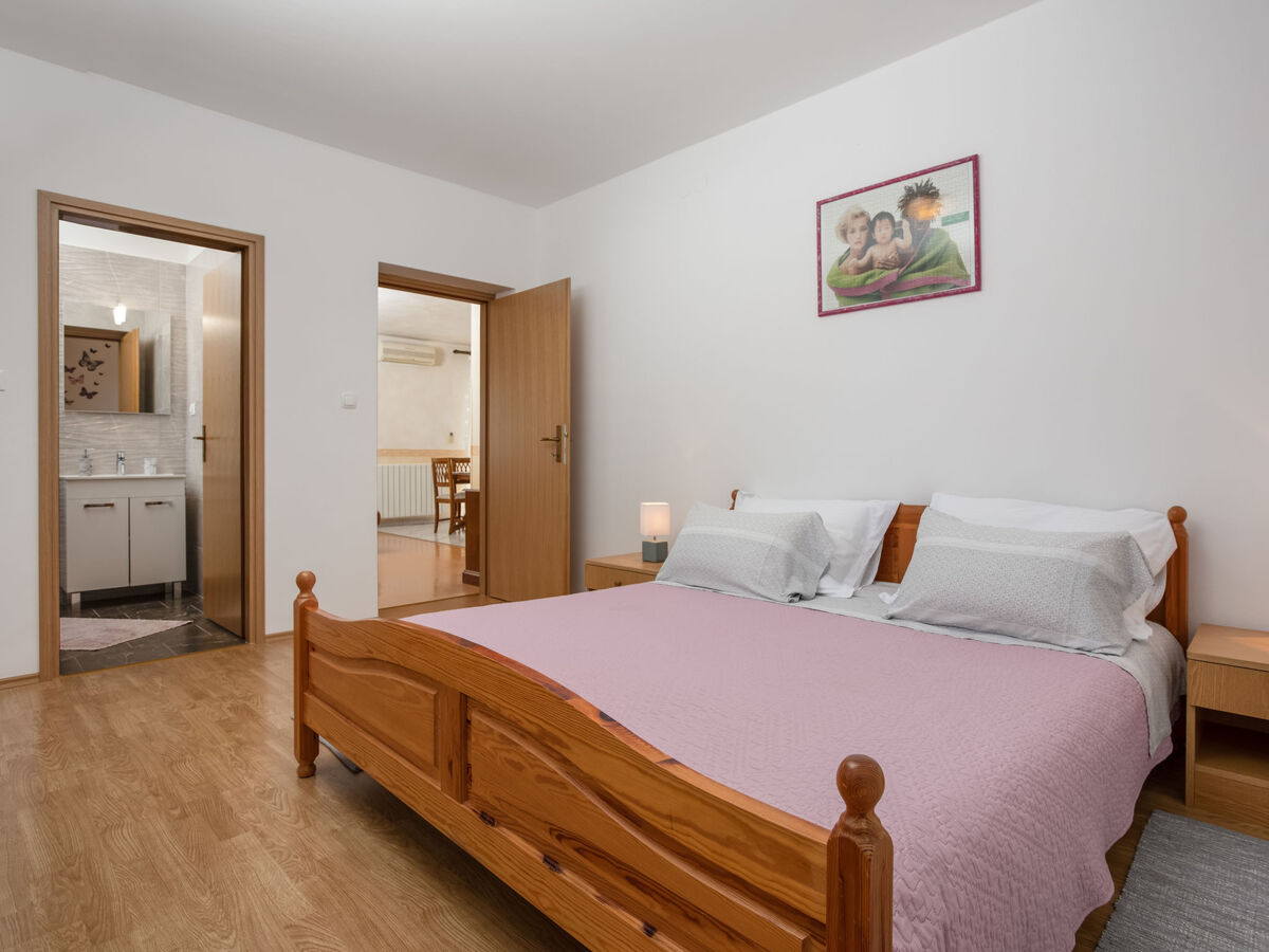 1 chambre avec 1 lit double (2 x 90 cm, longueur 190 cm), douche/WC.