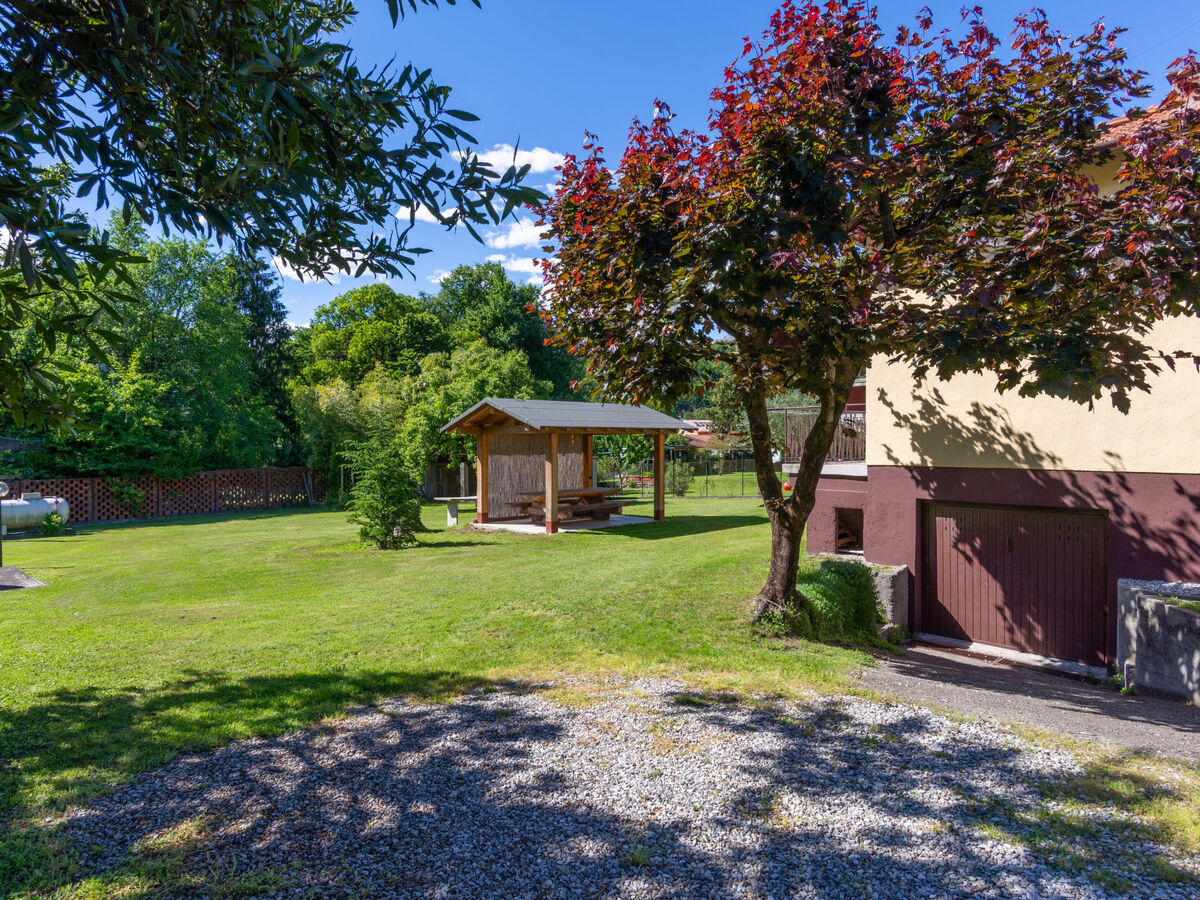 A usage privé: terrain 1'350 m2 (clôturé), jardin entretenu avec pelouse et arbres.