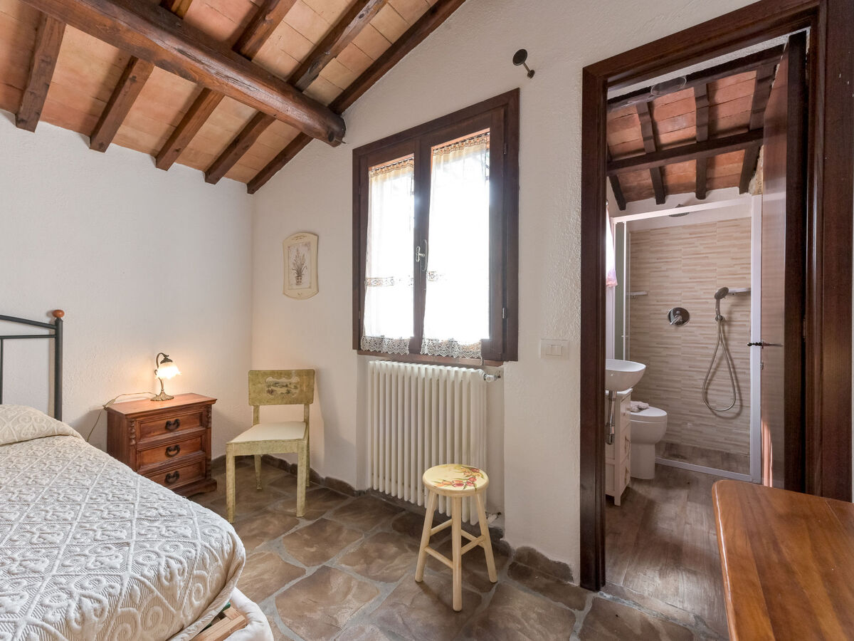1 chambre avec 1 lit (80 cm), 1 lit double (160 cm), douche/bidet/WC.