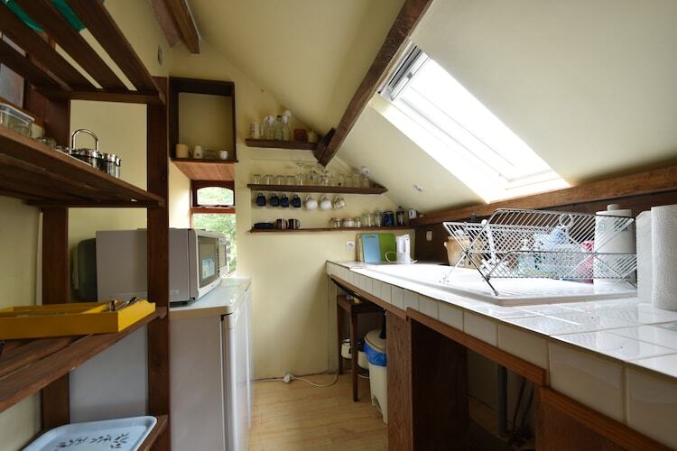 Rez-de-chaussée: (cuisine ouverte(foyer, bouilloire, grille-pain, cafetière/percolateur, four, micro ondes, réfrigérateur, congélateur), salle à manger-salon(table, coin salon), chambre(lit double(140 x 190 cm)), salle de bains(douche, WC)) mobilier de jardin, barbecue, parking