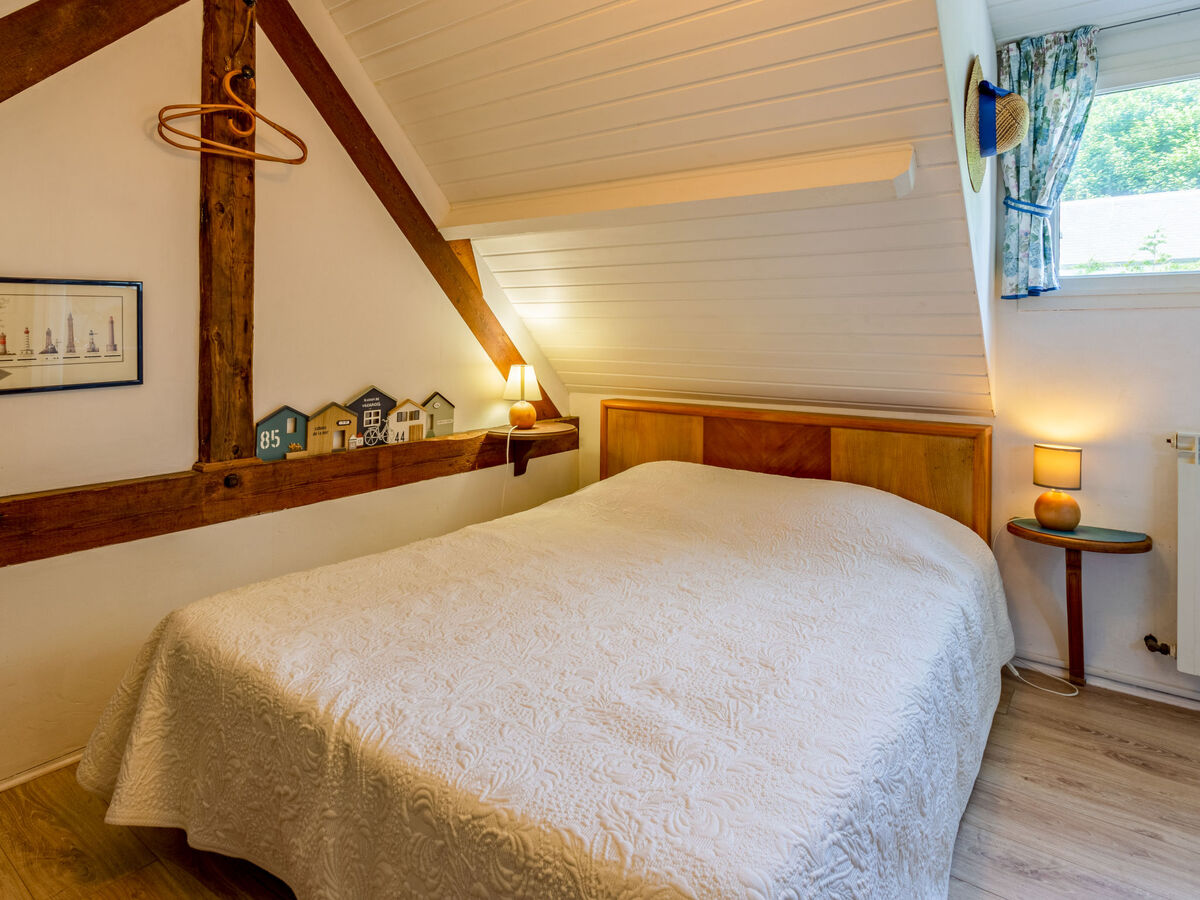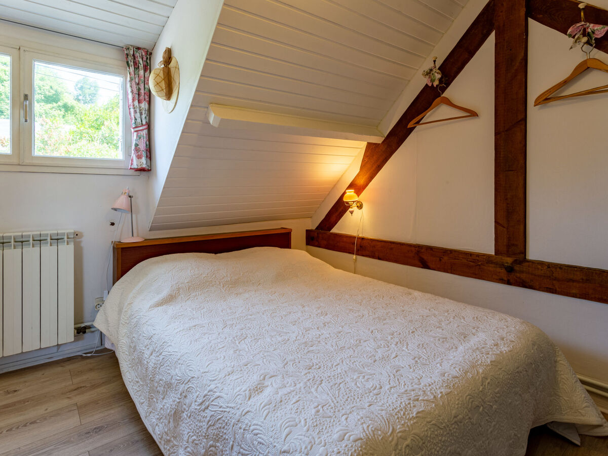 À l'étage supérieur: 2 chambres, mansardées, chaque chambre avec: 1 grand-lit (1 x 140 cm, longueur 190 cm), lavabo.
