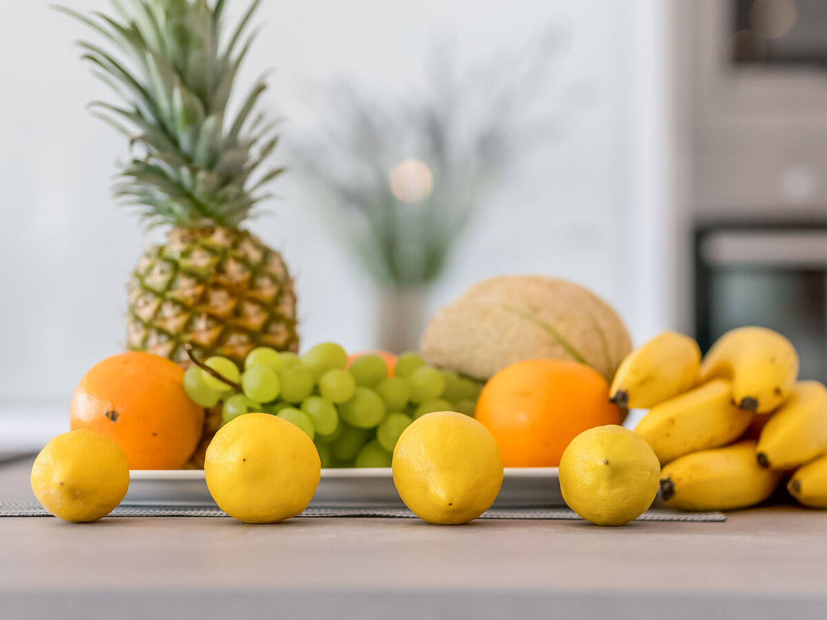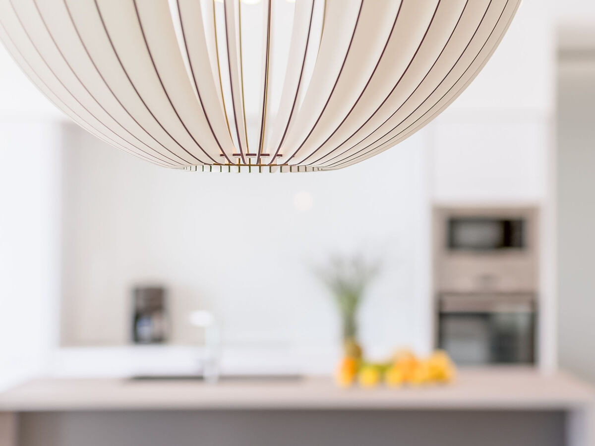 Cuisine ouverte (four, lave-vaisselle, 4 plaques vitrocéramiques, micro-ondes, congélateur, cafetière électrique).