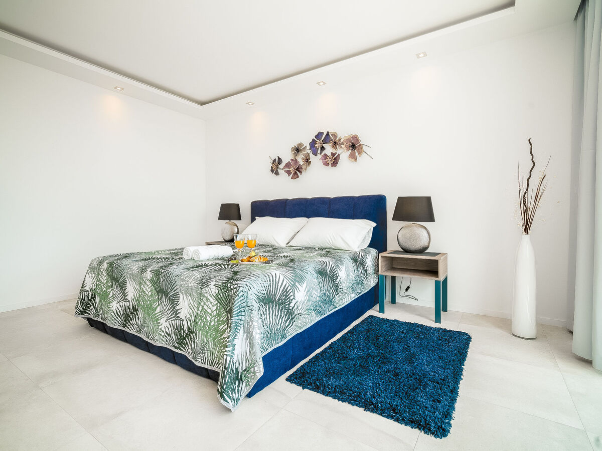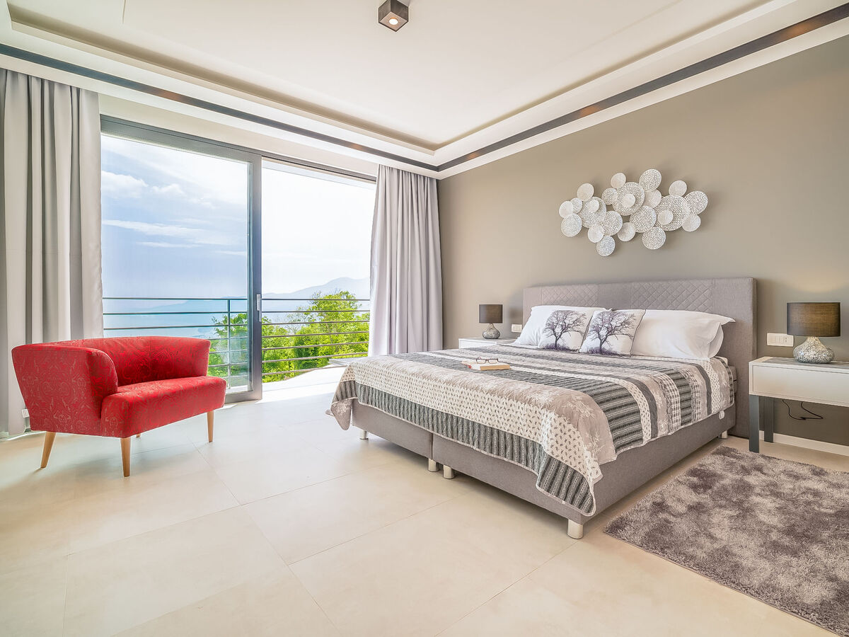 1 chambre avec baie vitrée avec 1 grand-lit (180 cm, longueur 200 cm), bain/WC, double vasque et TV (satellite) (écran plat).