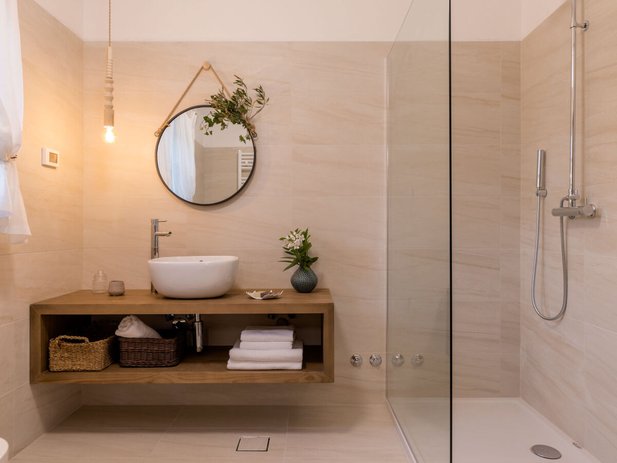 1 chambre avec 1 grand-lit (160 cm, longueur 200 cm), douche/bidet/WC et air-conditionné.
