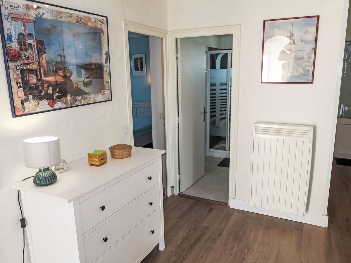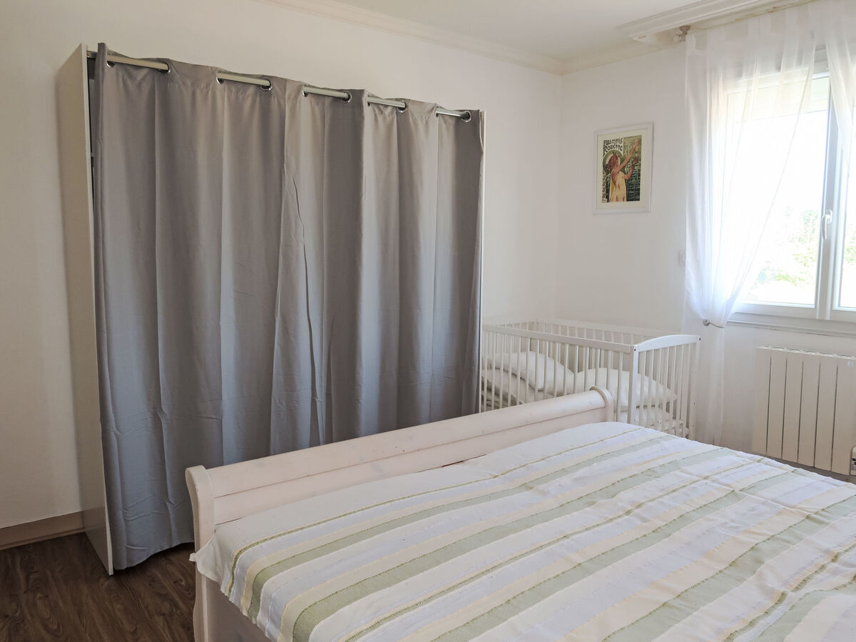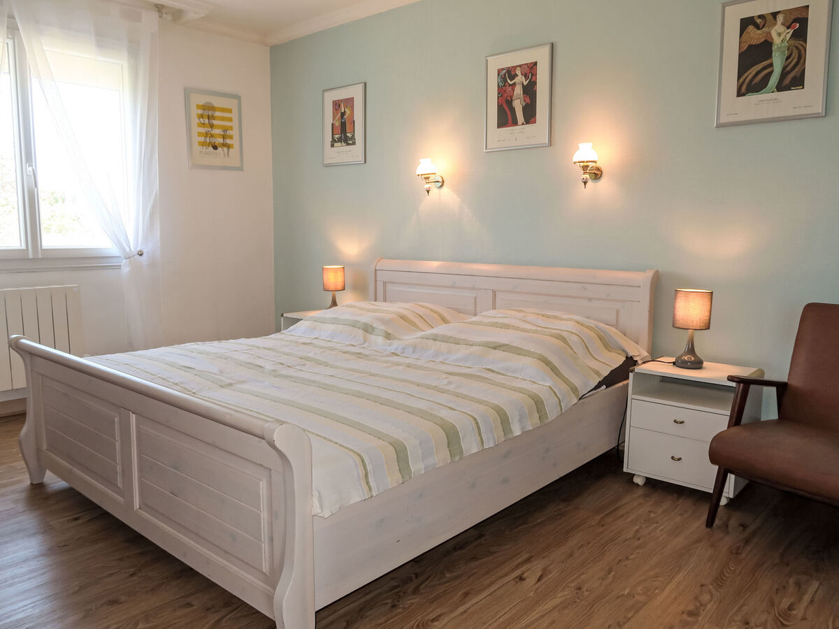 1 chambre, mansardée avec 1 grand-lit (140 cm, longueur 190 cm).