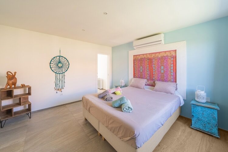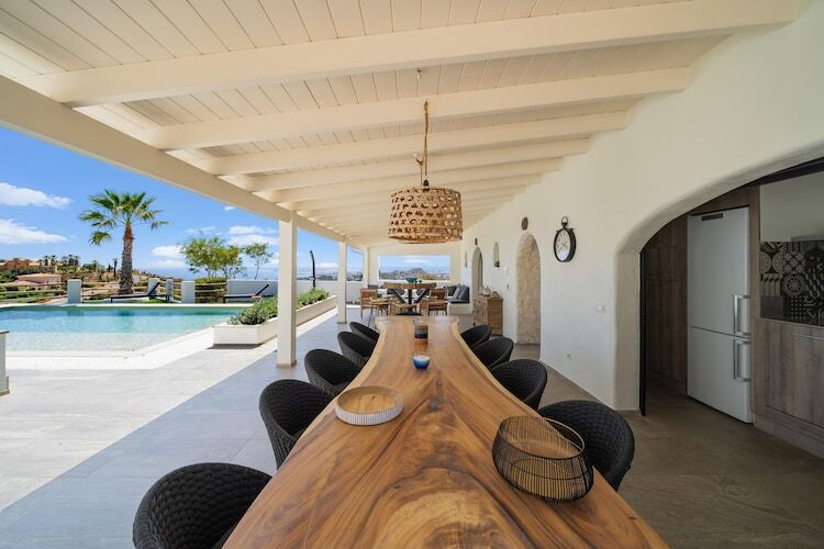 À l'extérieur, la piscine privée devient le cœur de la villa, entourée de chaises longues, de coins salon ombragés et d'une cuisine extérieure moderne avec barbecue et lave-vaisselle, idéale pour se retrouver autour de repas en plein air. Vous pourrez demander le chauffage de la piscine pour une baignade agréable ou profiter des soirées sur la terrasse avec vue sur la mer. La villa offre également des commodités telles que la climatisation, une cuisine entièrement équipée et une buanderie pour les longs séjours.