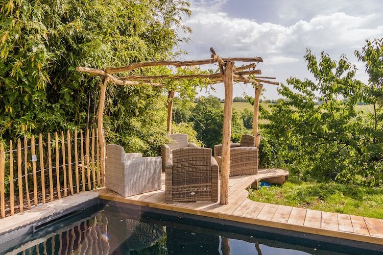 De votre maison, vous voyez la vallée, le jardin et la piscine. Il y a également un gîte pour deux personnes sur la même propriété. Vous partagez la piscine avec les éventuels hôtes de ce gîte.
