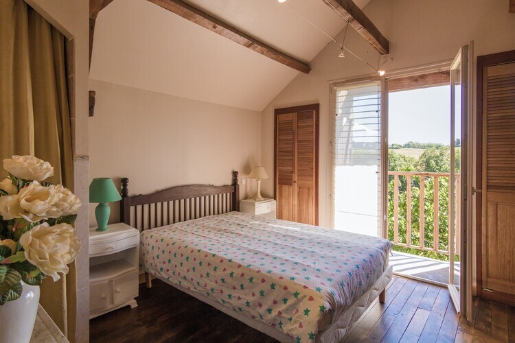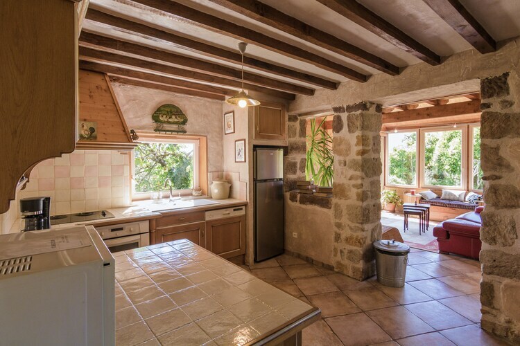 Cette ferme rénovée, avec piscine partagée et une vue magnifique, se situe dans un petit hameau de ferme calme sur une colline. La maison a surtout beaucoup d'espace en bas avec deux coins salon, une grande cuisine ouverte et une belle terrasse qui est accessible depuis le salon. Au premier étage, vous avez deux chambres spacieuses et sur le grand palier un grand lit ancien pour une cinquième personne.