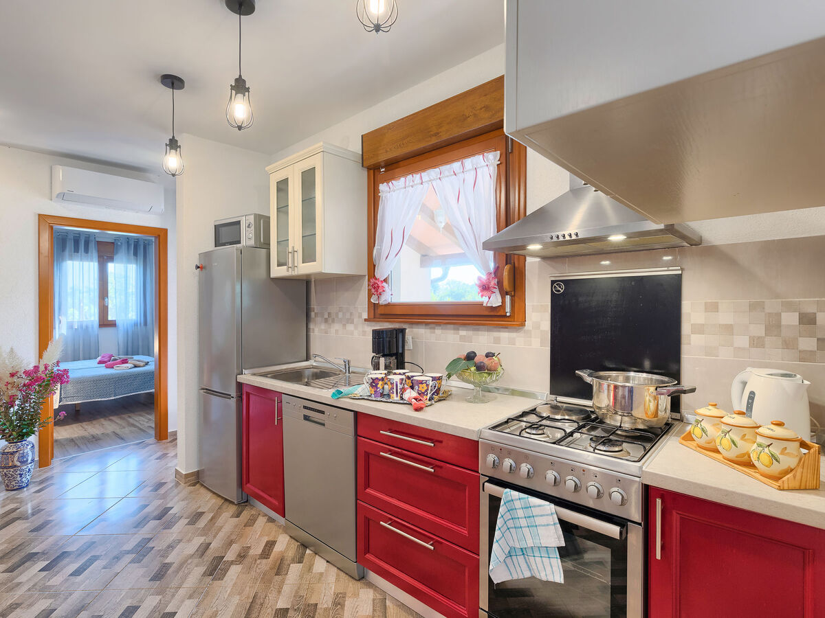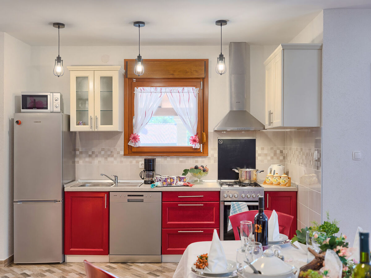 Cuisine ouverte (1 plaque de cuisson, four, lave-vaisselle, 3 feux, grille-pain, bouilloire électrique, micro-ondes, congélateur, cafetière électrique).