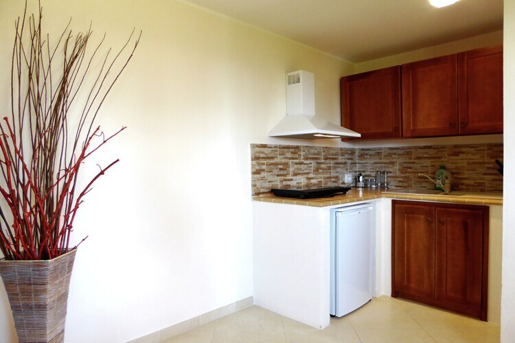 Rez-de-chaussée: (cuisine ouverte(cuisinière(2 plaques de cuisson, induction), combinaison réfrigérateur/congélateur), salle à manger-salon(canapé-lit double, TV(satellite)), chambre(lit double), salle de bains(douche, lavabo, WC, bidet), chauffage) jardin(partagé avec d'autres clients, > 1000 m2), parking, piscine(partagé avec d'autres clients, 12 x 6 m., ouvert de Mai jusqu'à (inclus) Sept), terrain de pétanque, équipements de jeux, tennis de table/ping-pong