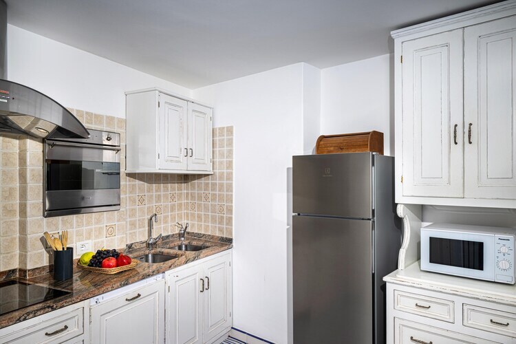 La maison dispose d'un salon chaleureux avec télévision par satellite et d'une cuisine ouverte bien équipée avec four et micro-ondes. À l'étage, la chambre comprend un lit double et une salle de bain attenante avec baignoire et douche. Une deuxième salle de bain au rez-de-chaussée est équipée d'un lave-linge et d'un sèche-linge pour plus de confort. La climatisation assure votre confort, et la terrasse privée est idéale pour savourer votre café du matin ou admirer le coucher de soleil le soir. Un parking privé est également disponible.