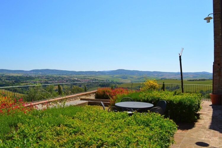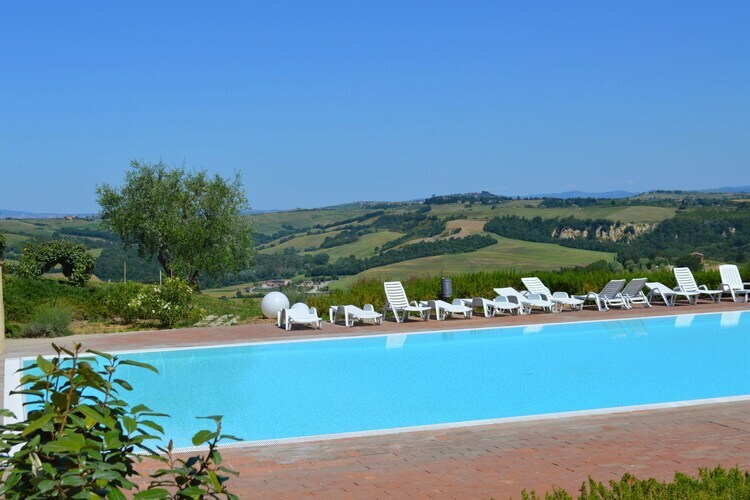 La propriété est situé dans le Crete Senesi, à seulement 10 km de Sienne et à 15 km de Asciano. La maison est situé sur une des collines les plus pittoresques et les plus photographiés de la partie sud de la province de Sienne. Cette colline est le siège de la sculpture magique de Jean Paul Philippe. La maison est entouré de 2400 m2 de jardin bien entretenu et dans la partie la plus panoramique se trouve la piscine privée de 3 à 7 m avec une profondeur de 1,20 m. La maison a été récemment restaurée en respectant les sols en terre cuite toscane traditionnelle et plafonds avec poutres apparentes. Le mobilier de haute qualité crée une bonne ambiance pour un séjour confortable. Des grandes fenêtres de la cuisine et les chambres et de la piscine vous avez une vue sans fin sur les Crete Senesi et sur Sienne. Le complexe dispose de deux piscines, l'une de 20x8 et l'autre de 6x5, d'un solarium, de deux parkings par appartement, le tout immergé dans une oliveraie centenaire. Pour les arrivées après 20 heures, il y a un supplément de 30 euros.