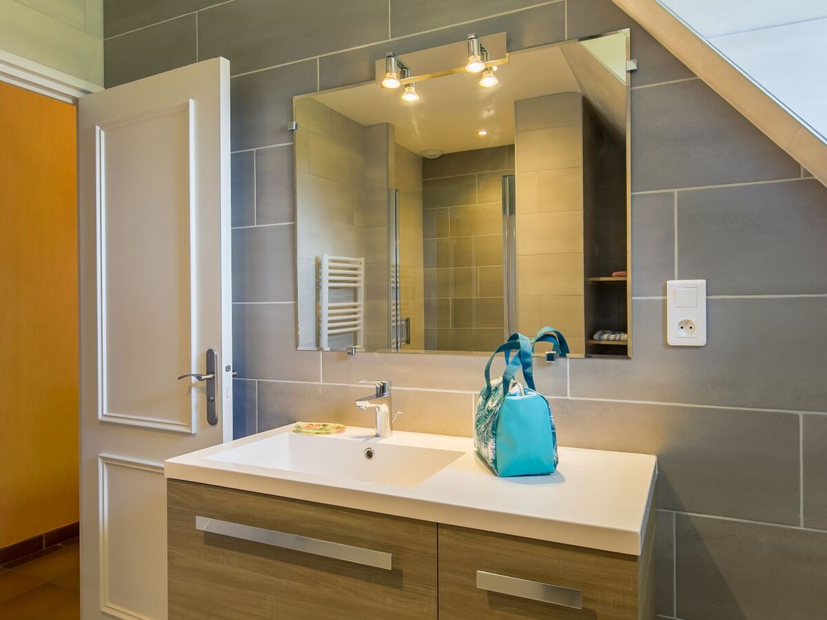1 chambre avec 1 grand-lit (140 cm, longueur 190 cm), lavabo.
